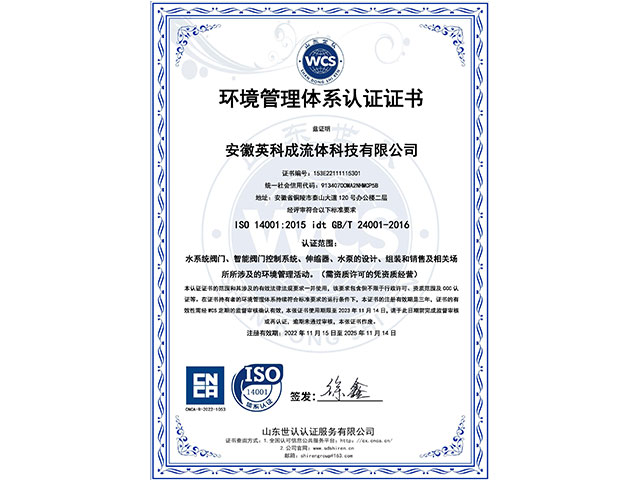 安徽英科成流體科技有限公司位于黃山腳下長江之濱的中國古銅都-安徽省銅陵市。公司注冊資金1.1億,是國內(nèi)一家專業(yè)致力于給排水行業(yè)系統(tǒng)解決方案、閥門以及智能閥門技術(shù)研發(fā)與生產(chǎn)銷售服務(wù)為一體的企業(yè)。   我們擁有完善的質(zhì)量控制體系和檢測設(shè)備,公司主要的產(chǎn)品有閘閥、蝶閥、偏心半球閥、液控蝶式止回閥、靜音止回閥、橡膠瓣止回閥、活塞式流量調(diào)節(jié)、錐型閥、節(jié)能型泵控閥、倒流防止器、減壓閥、排氣閥、排泥閥、伸縮器、閘門、啟閉機等二十多個系列,可以充分滿足客戶的一站式需求。……